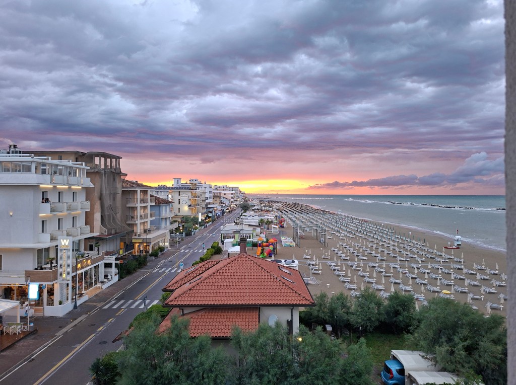We drove south for a few days and booked a small hotel right by the beach. The kind of place where sand gets everywhere, and no one really cares. Everything we needed was nearby: the water, a bakery, and plenty of places selling hot piadine straight from the grill.