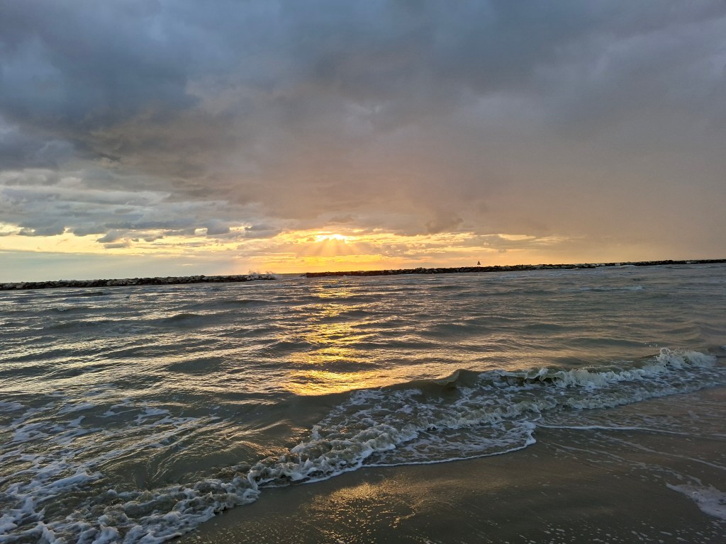 The sky darkened quickly. The air turned heavy, then wild. From the balcony, we watched lightning flashing far out at sea. The waves grew louder, the wind stronger. It was the first time I saw a storm at the beach — beautiful and a little unsettling. Nature doesn’t perform often, but when it does, it’s unforgettable.