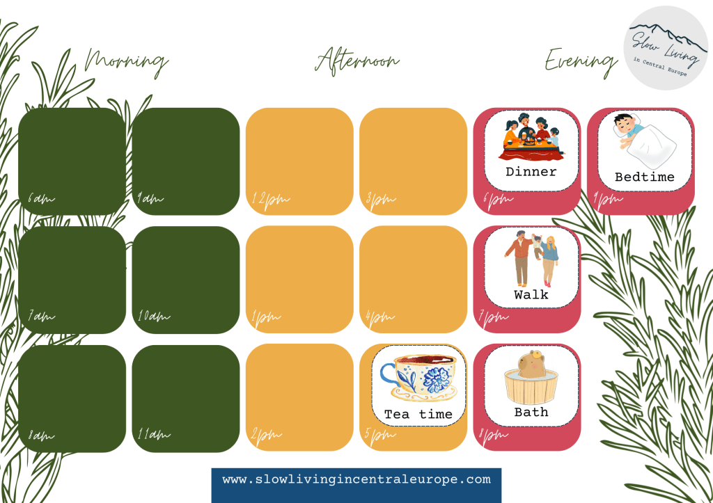 We’ve created a printable A4 planner to help you shape your ideal slow family evening routine — whatever your schedule looks like.